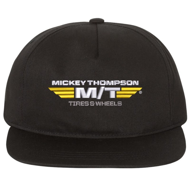 The Mickey Thompson Flat Bill Hat in black delivers a bold, structured look with classic streetwear style. Made with 100% cotton twill front panels and bill, this high-profile cap offers durability and a clean finish. The flat bill adds a modern edge, while the 7-position adjustable snapback closure ensures a secure, customizable fit for all-day comfort.