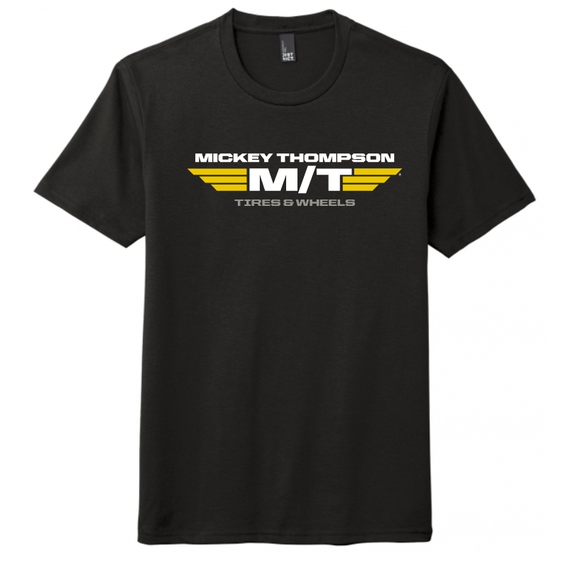 The Mickey Thompson Icon T-Shirt in black offers a comfortable, easygoing style with a classic fit. Crafted from a soft triblend of polyester, combed ring spun cotton, and rayon, this 4.5-ounce (153 GSM) tee feels lightweight and breathable. Features like a 1x1 rib knit neck, shoulder-to-shoulder taping, and a tear-away label enhance durability and comfort. Perfect for everyday wear, this versatile shirt pairs effortlessly with any casual outfit.