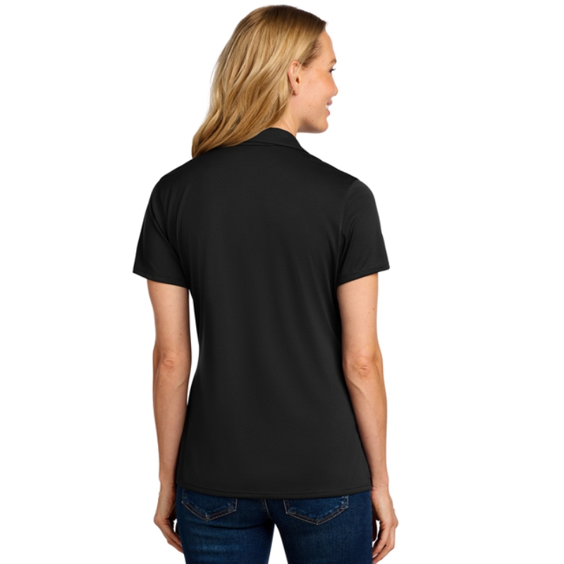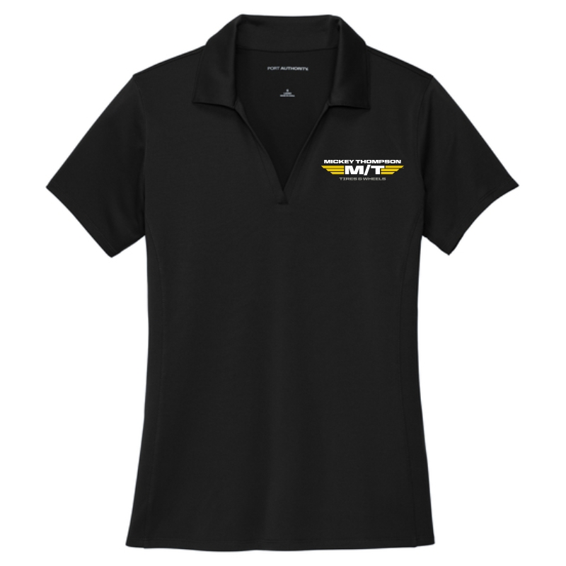The Mickey Thompson Women’s Polo in black is a polished, performance-driven essential designed for the workplace and beyond. Made from lightweight 100% polyester jersey, it features moisture-wicking, odor-fighting, and stain-release properties to keep you looking fresh and professional all day. The snag-resistant fabric offers durability, while the self-fabric collar, open neck, front seaming, and side vents provide a clean, comfortable fit. Rental-friendly and built for performance, this polo delivers both style and function.