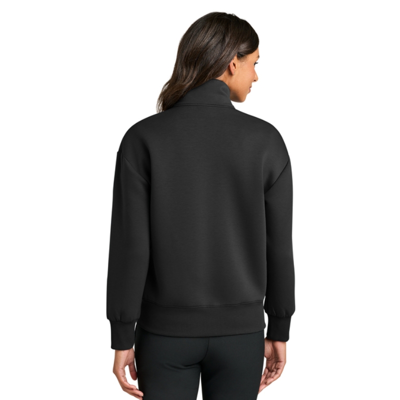 The Mickey Thompson Women’s 1/4-Zip Pullover in black is a polished, versatile layer designed for both work and everyday wear. Made from a soft, peached spacer knit, it offers lightweight insulation with a smooth, structured feel. This performance-driven pullover features odor-fighting technology and UPF 50+ protection for all-day comfort and confidence. Finished with a dyed-to-match molded zipper, rib knit collar lining, cuffs, and hem, plus a relaxed drop shoulder fit, it’s the perfect blend of style and function.
